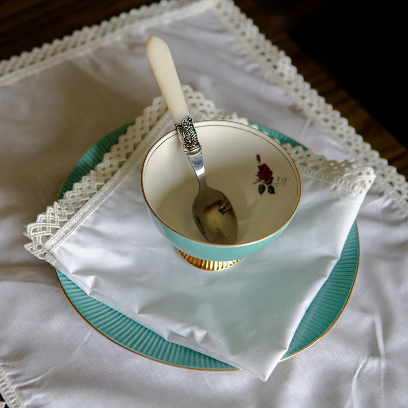 Enhance your dining decor with our 9 PCS Trolley Mat and Napkin Set, adorned with delicate lace for a sophisticated touch. Crafted from premium fabric, this elegant and durable set is perfect for both special occasions and everyday use.