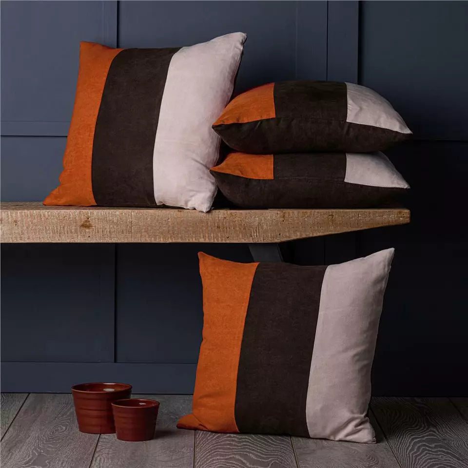Color Block Strip Cushion Cover Brick Red and Brwon