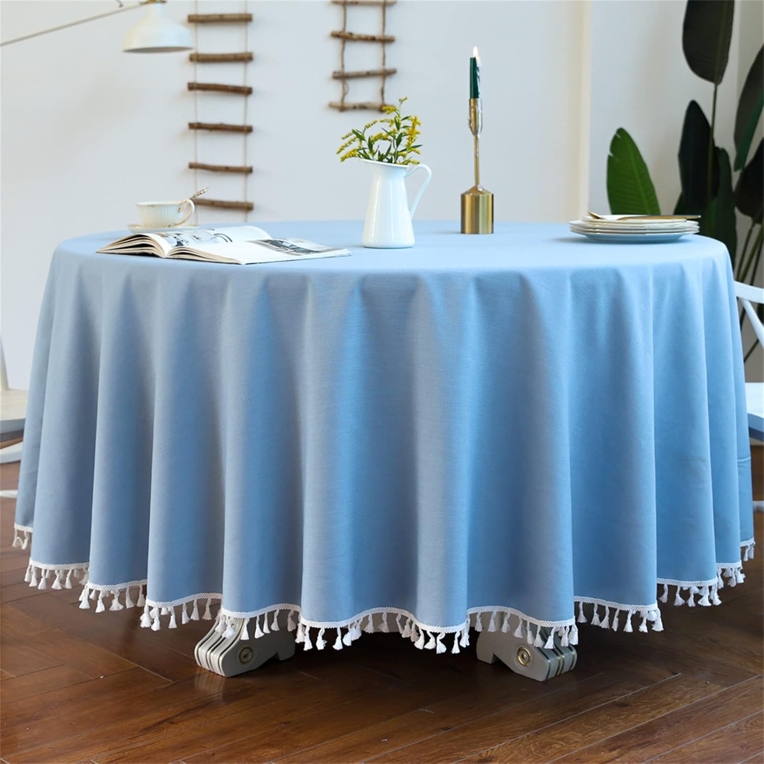Cotton Satin Decorative Round Tablecloth With Tesals- Blue