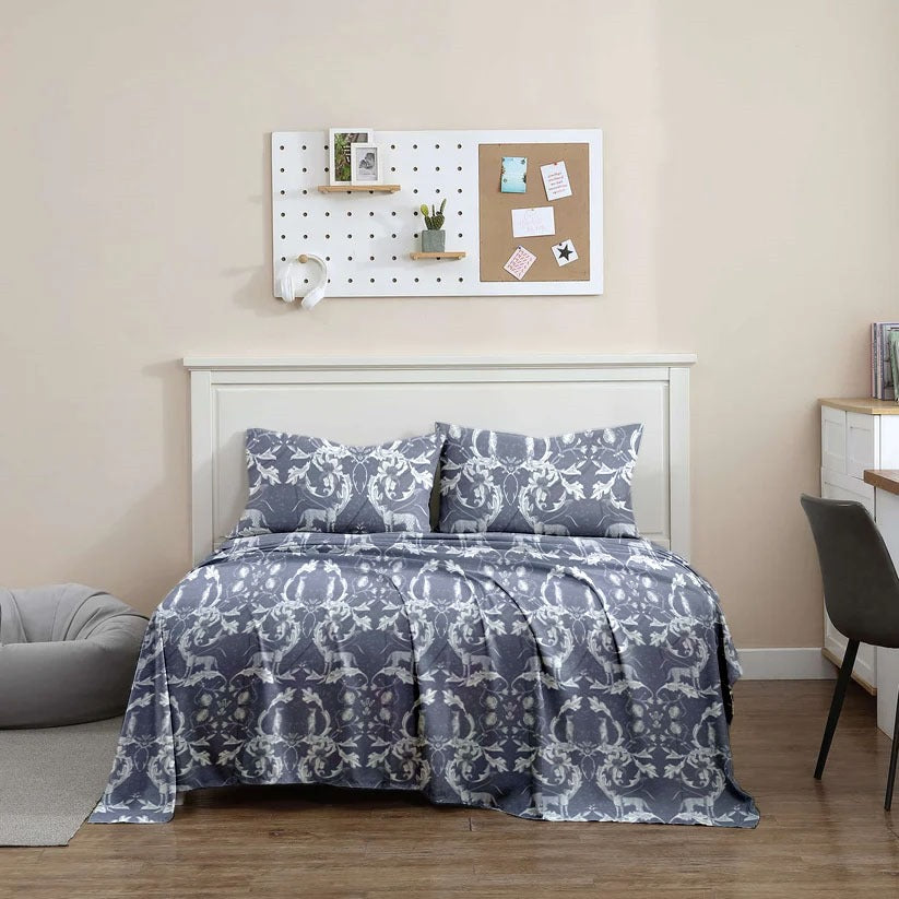 Cotton Satin Printed Double Bed sheet Blue safari