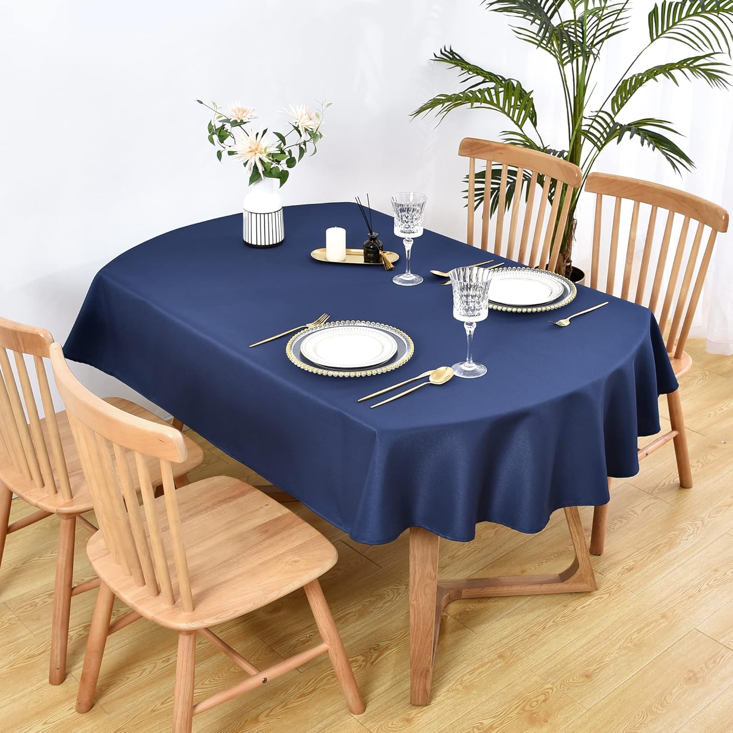The Oval-shaped tablecloth fits most large folding buffet tables, party tables, outdoor picnic tables, dining rooms, kitchen...