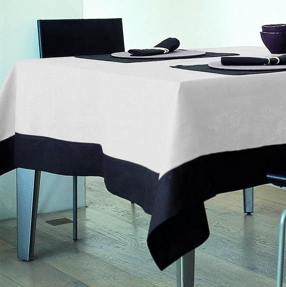 Decorative Cotton Tablecloth - White With Navy Bordered