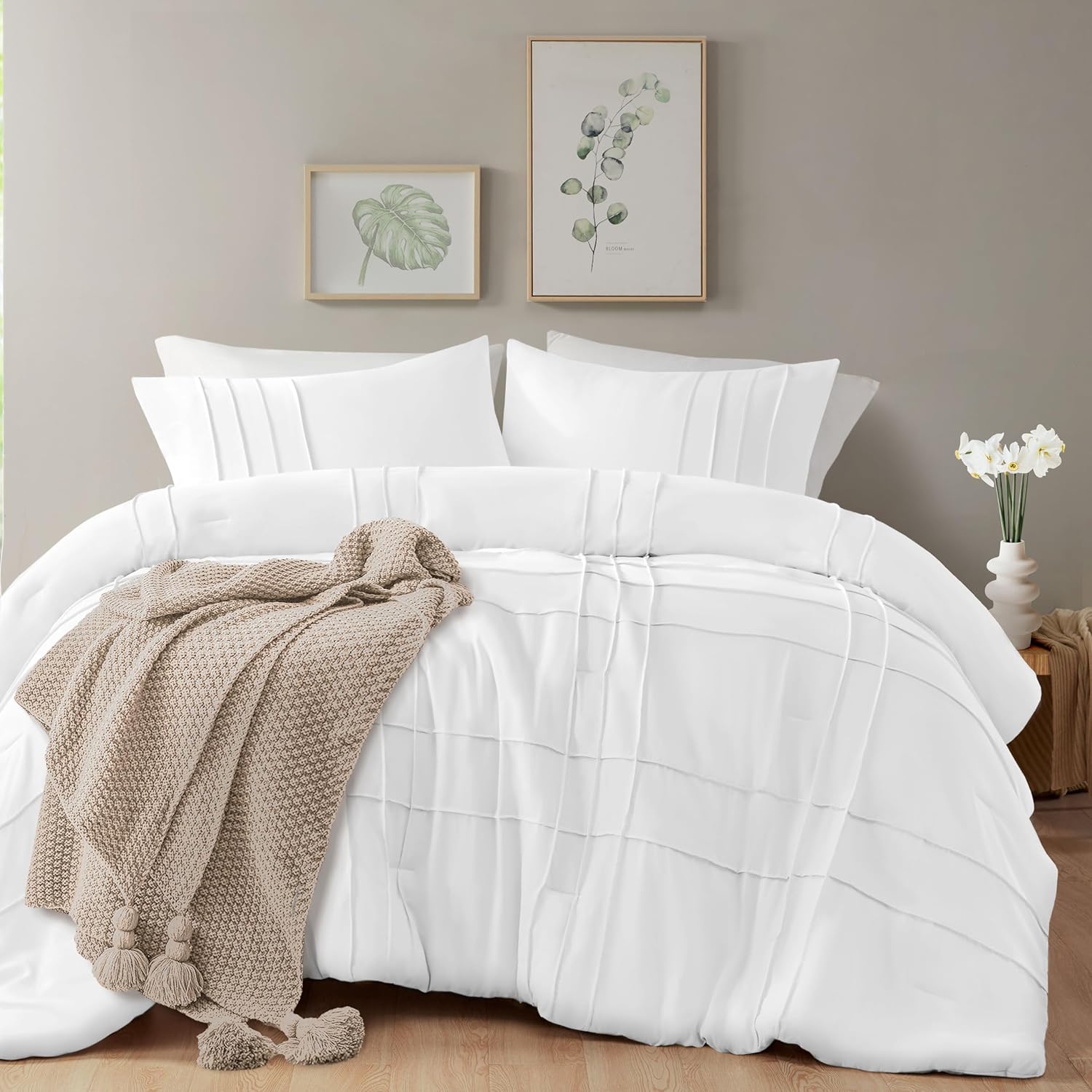 Luxury Coton Box Pleats Duvet Cover Set -White