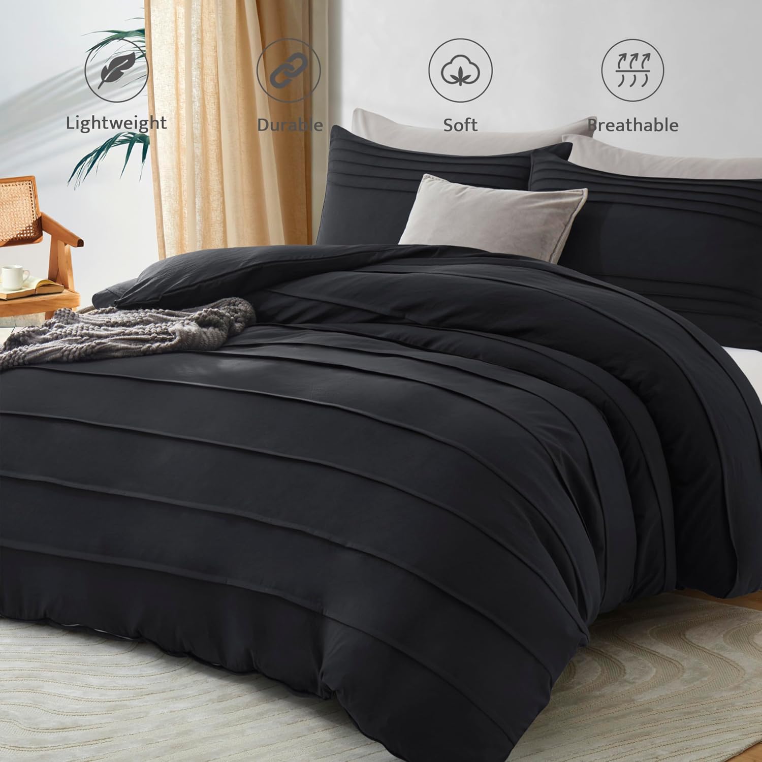 Luxury Coton Pleats Duvet Cover Set - Black