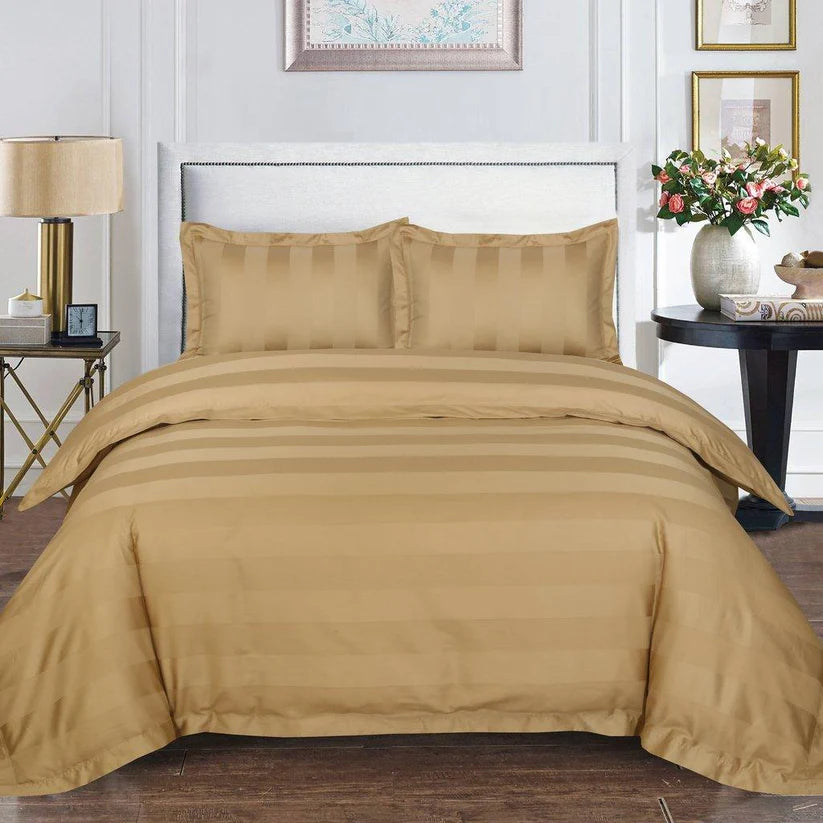 Luxury Satin Stripe Duvet Cover Set Skin Beige