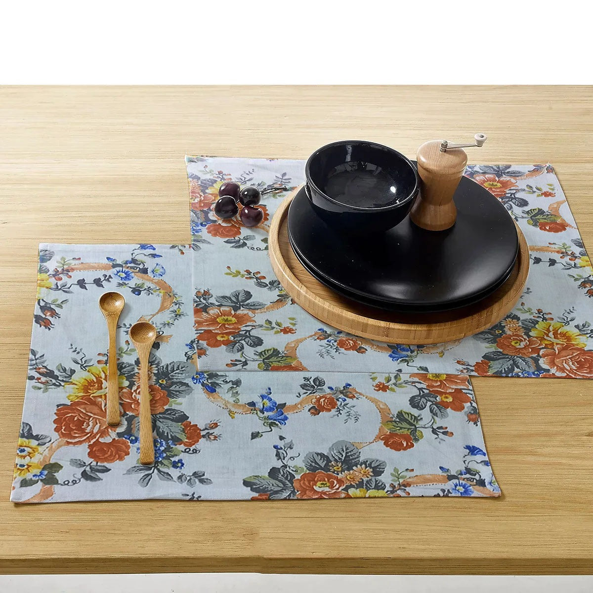 Printed Cotton Revrsable Dinning Set - Rose Garden Beige