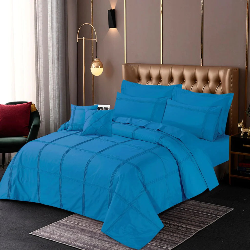 Square Pleated Cotton Quilt Cover Set - Light Blue